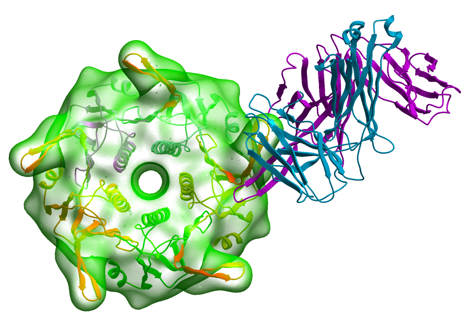 The V3-CTB construct (ribbon and transparent surface) was modeled using ICM-Pro