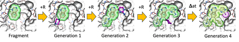 Through successive generations, fragments evolve into more complete and optimized ligands. This iterative grow-and-select strategy enables efficient exploration of chemical space while maintaining binding quality, drug-like behavior, and practical synthetic feasibility. To run Ligand AIDE:
