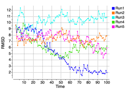 ICM-Pro provides built-in tools for analyzing and visualizing MD trajectories directly from the ICM conformational stack. A range of structural and energetic parameters can be computed and plotted over time, including:
