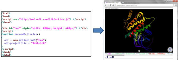 IcmJS (formerly known as ActiveIcmJS) is a JavaScript/HTML5 3D molecular viewer which does not require any plug-in or browser extension and runs inside any modern browser. IcmJS brings desktop quality graphics to the web applications.