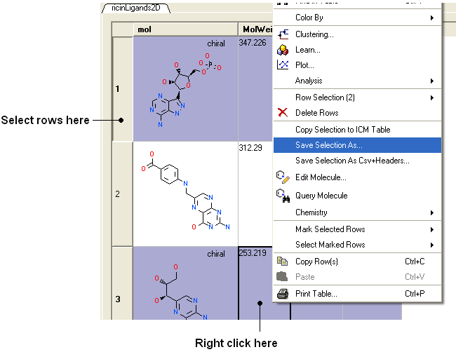 To save selected chemicals in a table as an SDF file: