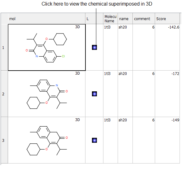 This option will superimpose a table of chemicals to a 3D template by rigid substructure.