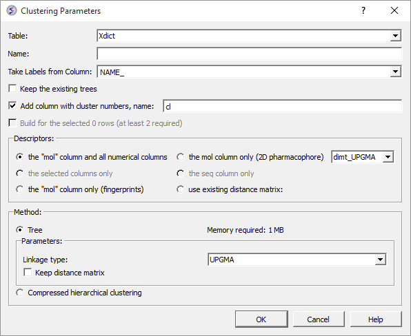 Now select the descriptors you wish to use for clustering.