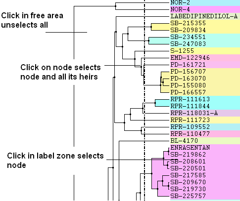 - Click in label zone selects node.