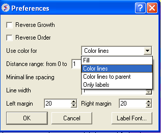 A number of changes to the tree view can be made by right clicking in the tree "free area" and selecting preferences as shown below.