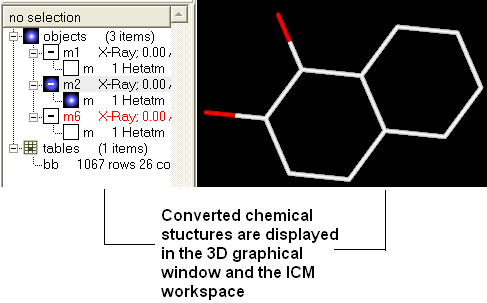 Once converted the compounds will be displayed in the 3D graphical display window and also in the ICM workspace.