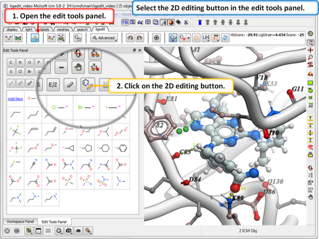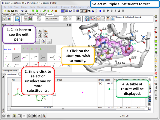 [ Edit ligand 2D | Multiple Substituents | User-Defined Modifiers | Change Torsions | Undo and Redo | Modification History | Save to Spreadsheet | After Editing the Ligand ]