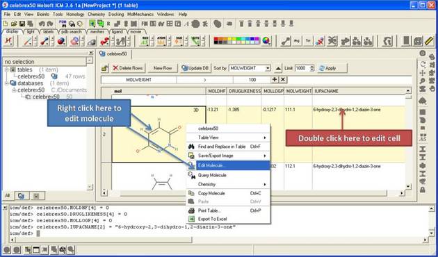 • Right click on the cell and select Edit Molecule