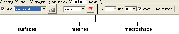 Click on the tab button entitled 'meshes' and three different graphical display tools are available for you to use. The three displays are surface, meshes and macroshape and are collectively referred to as meshes.