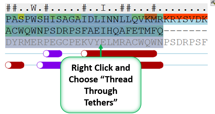 - Set tethers at the residue at the start and end of the loop. To set a tether double click on the two residues whilst holding down the CTRL key. Right click and select Set tethers. Selecthow you want to tether to