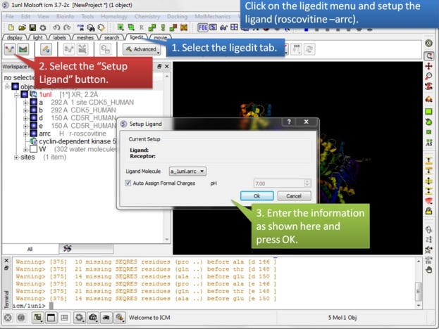 | Step 2: Setup the ligand in the 3D ligand editor. |