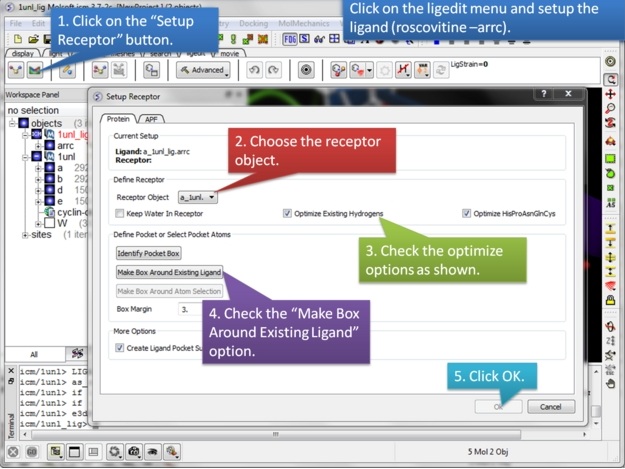 | Step 3: Setup the receptor in the 3D ligand editor. |