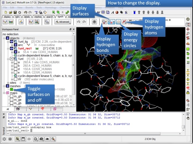 | Step 5: You can display and undisplay, hydrogen atoms, surfaces, and hydrogen bonds. |