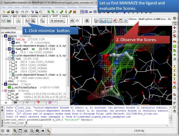 | Step 6: First minimize the ligand and observe the Scores. |