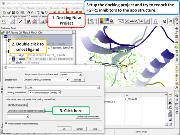 | Step 2: Setup the docking project using the ligand from PDB 2fgi to define the docking site.