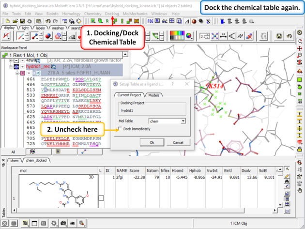 | Step 9: Dock the chemical table (chem) again but this time uncheck the box "Dock Immediately".