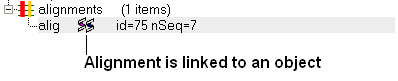 If an object is linked to an alignment a symbol as shown below will be displayed.