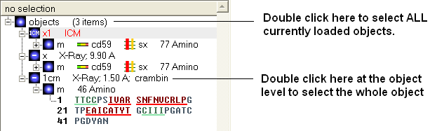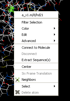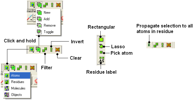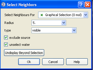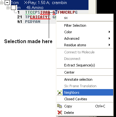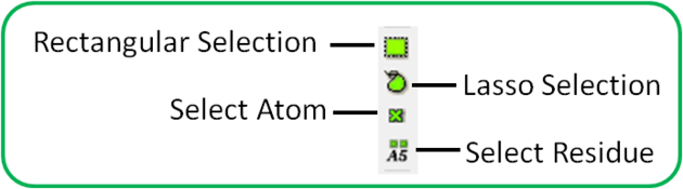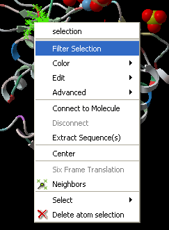 [ Selection | Quick Selection | Selection Levels | Selection Check | Orange Selection | Clear | Change Selection | Filter | Workspace Selections | Workspace Navigation | Select Object | Select Molecule | Select Residue | Select All | Neighbors | Neigh/Graphical | Neigh/Workspace | Residue Number | Alignment and Table | Links | Tags ]