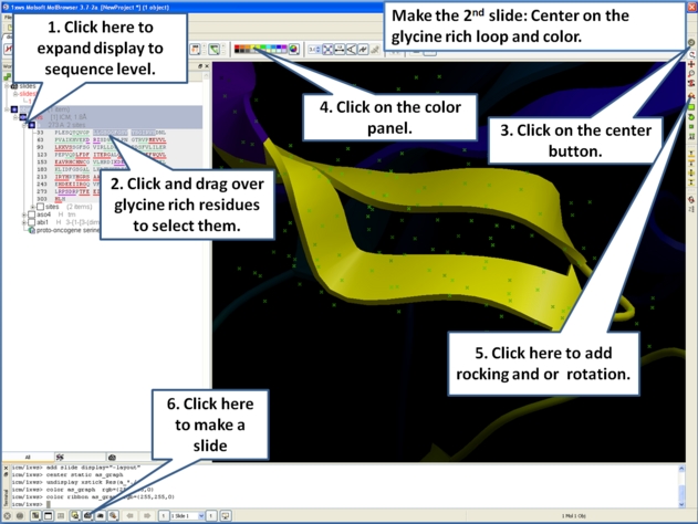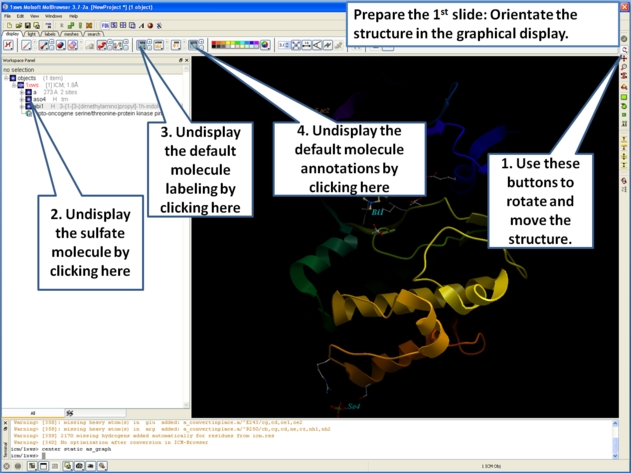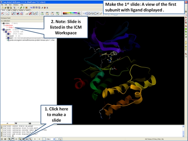 - First load the structure or structures you wish to display in your first slide. Additional structures, labels etc and text can be added at any point during