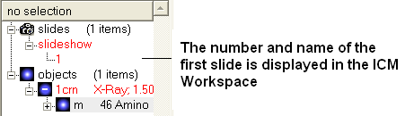 - Once you have clicked on the camera button you will see that the first slide has been generated. The first slide is shown in the ICM Workspace window as