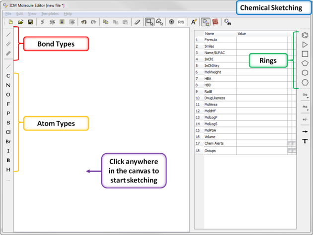 To draw a new chemical structure the ICM Molecular Editor should be loaded. To do this: