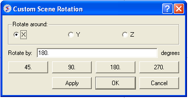 - Enter the number of degrees of rotation you require and in which X, Y or Z coordinate.