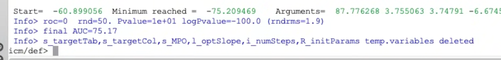 Final AUC Score: Once optimization is complete, the start and final AUC values are reported in the terminal window. The result MPO will then contain optimized parameters.