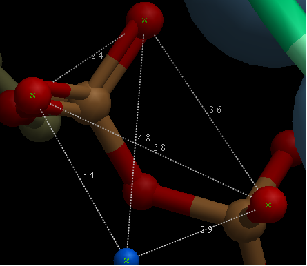 - Select the atoms between which you would like to find the distance. (See selection toolbar)