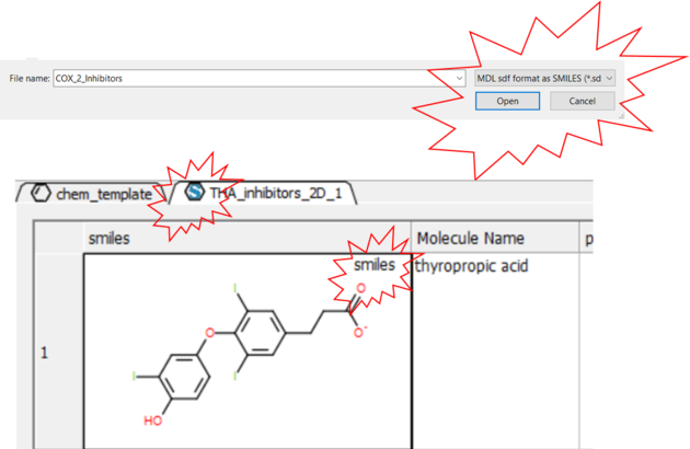 Chemical structures can be read into ICM from MOL/MOL2, SMILES, and SDF files or you can construct your own structures by drawing them in the ICM Molecular Editor. Chemicals can also be searched and downloaded via the Search Tab using the PDB Chemical Substructure Search, search by PDB Ligand Code, or by searching DrugBank, ChEMBL, SureChEMBL or PubChem. To read a chemical format file: