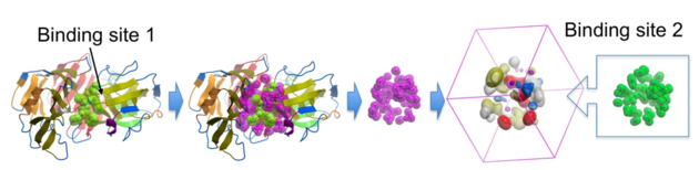 This feature is described in this publication by Max Totrov BMC Bioinformatics 2011. This binding site comparison algorithm utilizes optimal superposition of continuous pharmacophoric property distributions, this method offers high sensitivity in identifying both distantly homologous and convergent binding sites, demonstrating reliable superposition quality across multiple examples and enabling the effective clustering of ligand binding pockets in PDB. To run: