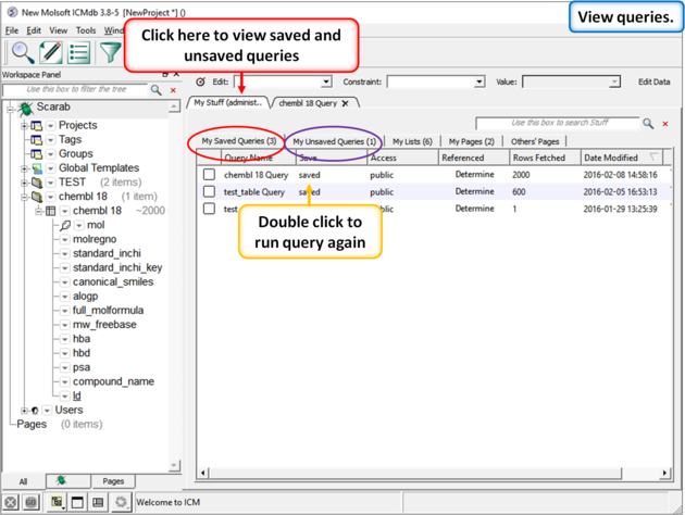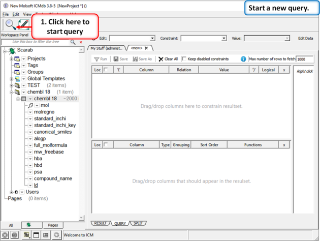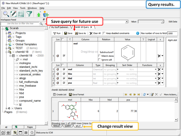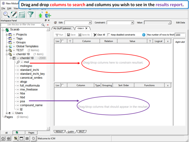 Scarab provides a convenient window to setup your query and report using drag and drop directly from the metadata tree. You can also save and share queries with other users.