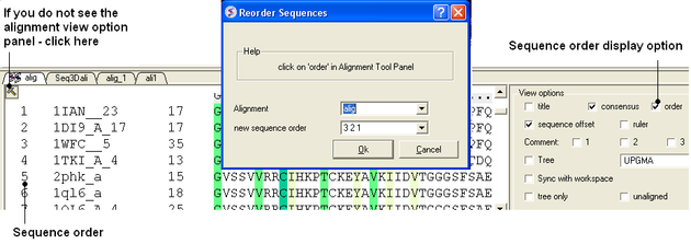 - Enter the new sequence order.You can see the sequence order alignment number by selecting