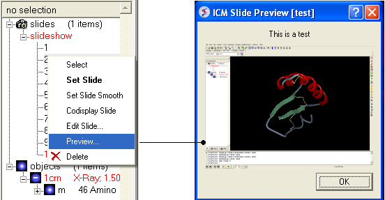 Or you can right click on the name of the slide in the ICM Workspace and select the option "Preview".