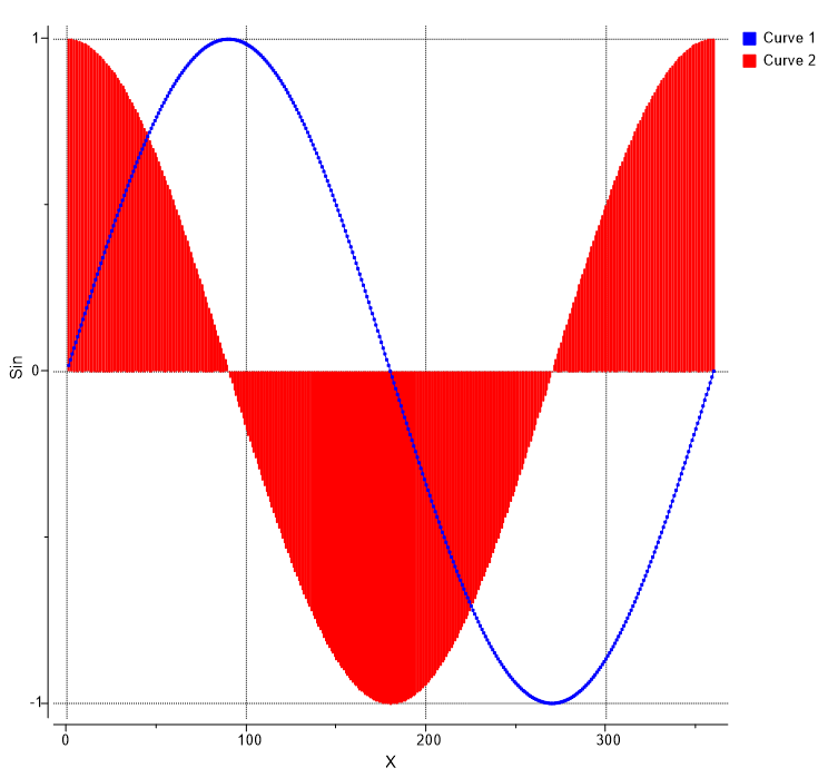 - Shading as shown in the image below (red shading) can be achieved by selecting Plotting Style > Vertical bars.
