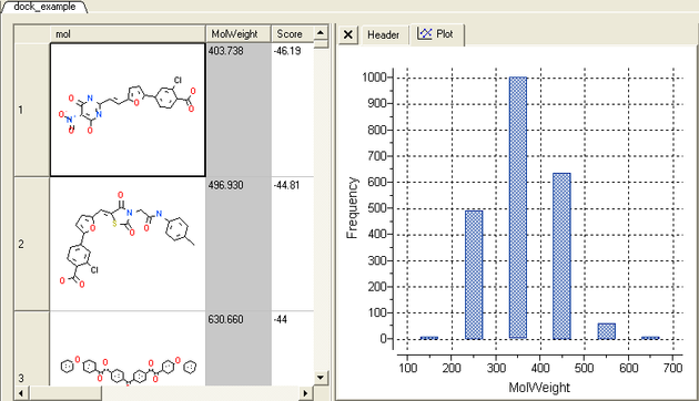 - Read in table d.tsv from here: https://molsoft.com/addons/ftp/workshop (1. cut and paste the address into a web browser. 2. Right click on d.tsv and choose "Save Link As". 3. Open the .icb in ICM File/Open).