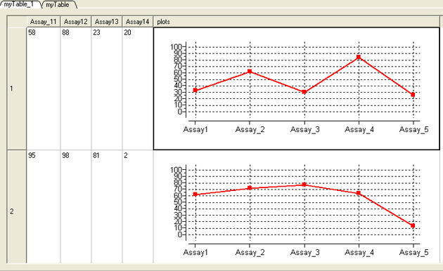 The data within a table can be plotted graphically. A histogram can be made for the data within one column or a plot can be