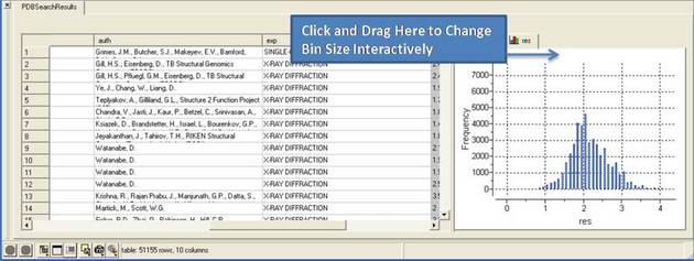 There are two ways to change the bin size. 1. Using the options dialog box or 2. interactively by left clicking and dragging at the top of the plot as shown below - this will allow you to find the best density estimation picture.