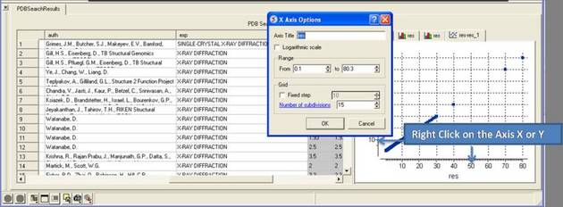 Each axis has a set of options which can be accessed by right clicking on the axis and selecting Options.