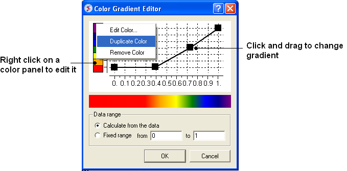- The color gradient can be applied to all points in the data or for a fixed range.
