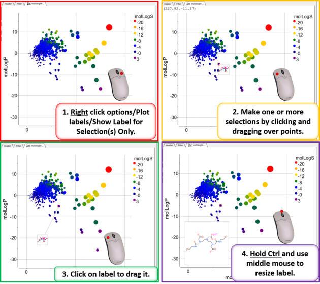 - If you only want to label selected points check the Show labels for selection only option. Making plot selections is described here.