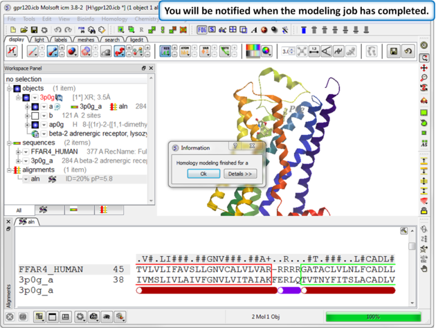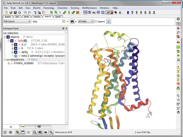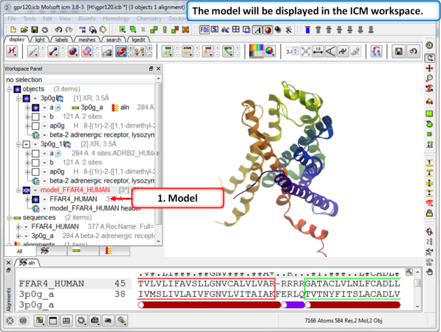 In this example we will build a homology model of GPR120 which is a member of the Class A GPCRs. GPR120 is gaining particular interest because it has been shown to be involved in the insulin-sensitizing effects of omega 3 fatty acids as well as inflammation. GPR120 dysfunction is responsible for reduced fat metabolism, thereby leading to obesity.