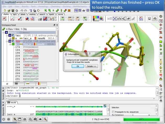 ICM has an excellent record in building accurate models by homology. The ICM modeling procedure builds the framework, shakes up the side-chains and loops by global energy optimization. You can also color the model by local reliability to identify the potentially incorrect regions of the model. ICM also offers a fast and completely automated method to build a model by homology and extract the best fitting loops from a database of all known loops. It just takes a few seconds to build a complete model by homology with loops. Some selected publications related to modeling and structure determination are listed here.