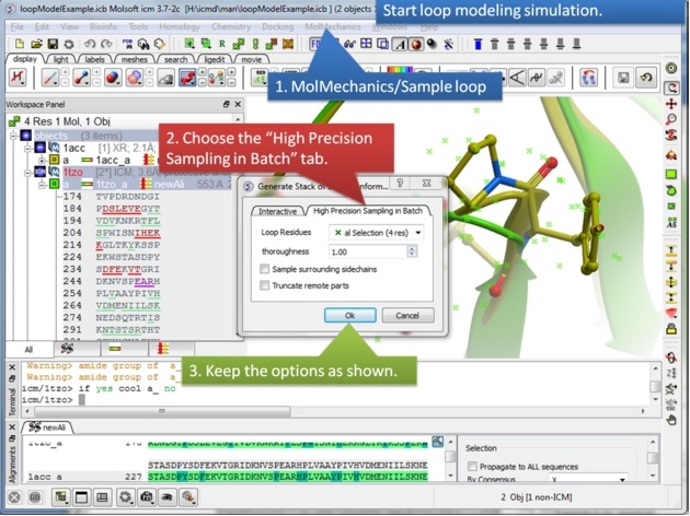 Step 8: Start the loop modeling using the option in the MolMechanics menu.