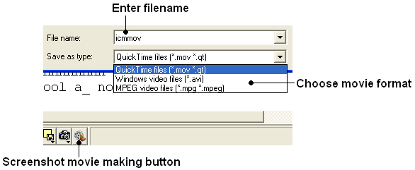 - Enter a file name for your movie and select the movie format (.mov, .avi, mpeg).