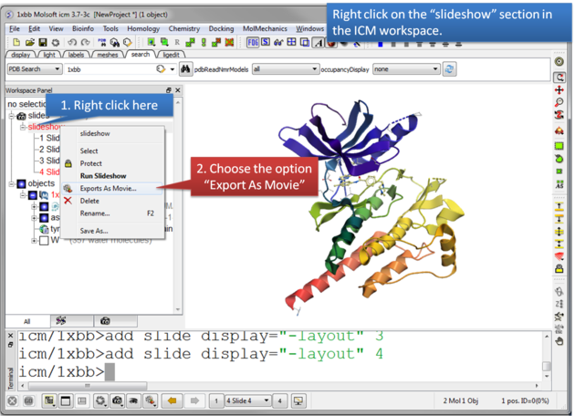 | Right click on the slideshow in the ICM Workspace and choose the option "Export as Movie".