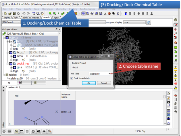 NOTE: If you want to run the docking again you need to uncheck the boxes in the 'docked' column in your original docking table. To uncheck all - right click on the 'docked' column header and choose 'uncheck'.