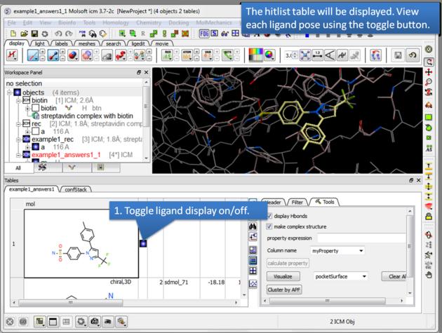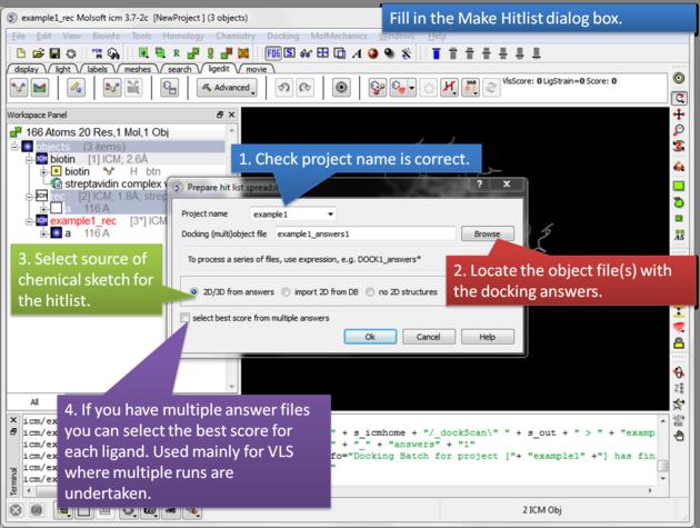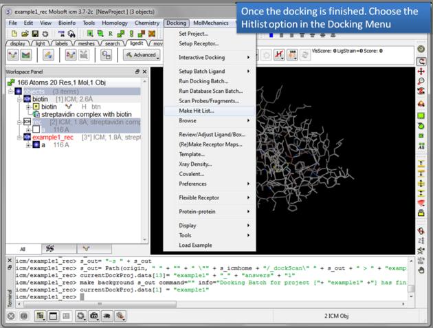 A hilist is a convenient way to view your docking results in a chemical spreadsheet. To make a hitlist