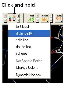 - Click and hold the button to change representation or use the hbondpairs option in the ICM Workspace.
