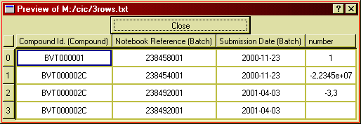 The server will further validate the data, e.g. by checking that compound IDs and batch